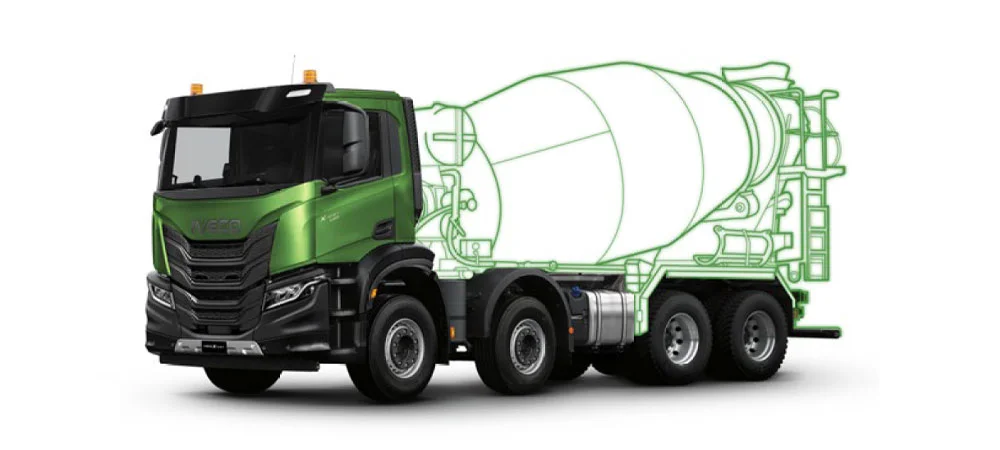 IVECO X-Way розширює межі, коли мова йде про його надзвичайно низьку споряджену масу. шасі з колісною формулою 8х4, пристосоване для бетонозмішувача, з 9-літровим двигуном потужністю до 400 к.с. (294 кВт) і 1700 Нм забезпечує видатну паливну економічність.