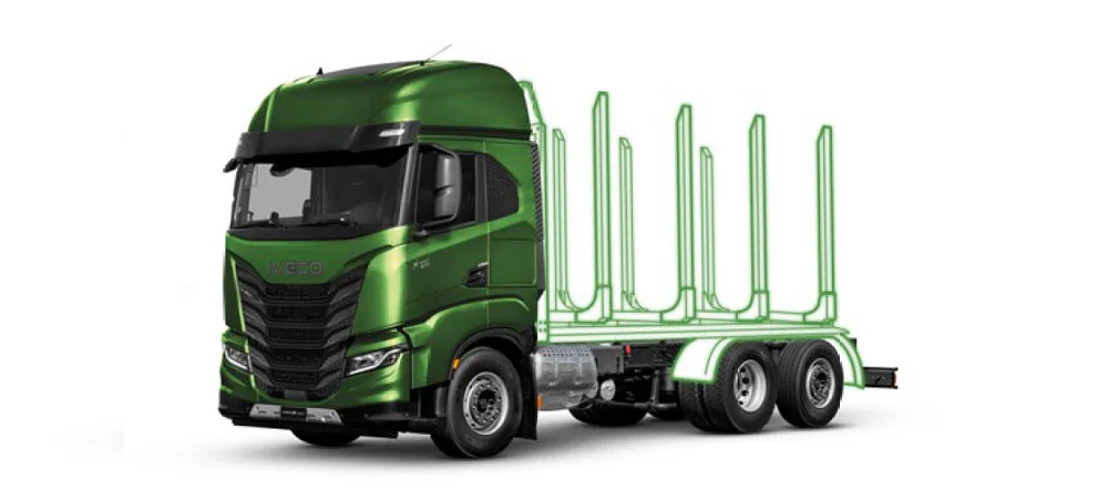 IVECO X-Way забезпечує найкращу потужність у своєму класі до 580 к.с. та пропонує ідеальні характеристики для легкого завантаження, транспортування та розвантаження деревини. Завдяки потужним двигунам, 3 варіантам комплектації, міцному шасі, великій вантажопідйомності та гідростатичному передньому приводу він впевнено перевезе лісоматеріал по різним дорогам до місця призначення.