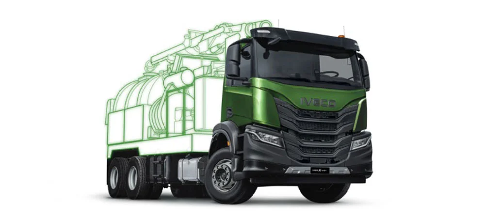 IVECO X-Way оптимізовано для легкого встановлення кузова очищувача канав та забезпечення всіх необхідних функцій. Висока продуктивність має важливе значення в цій місії, і новий XC13 забезпечує крутний момент до 2600 Нм. Незалежний від зчеплення сендвіч-карданний вал відбору потужності забезпечує крутний момент, необхідний для всмоктувального насоса.