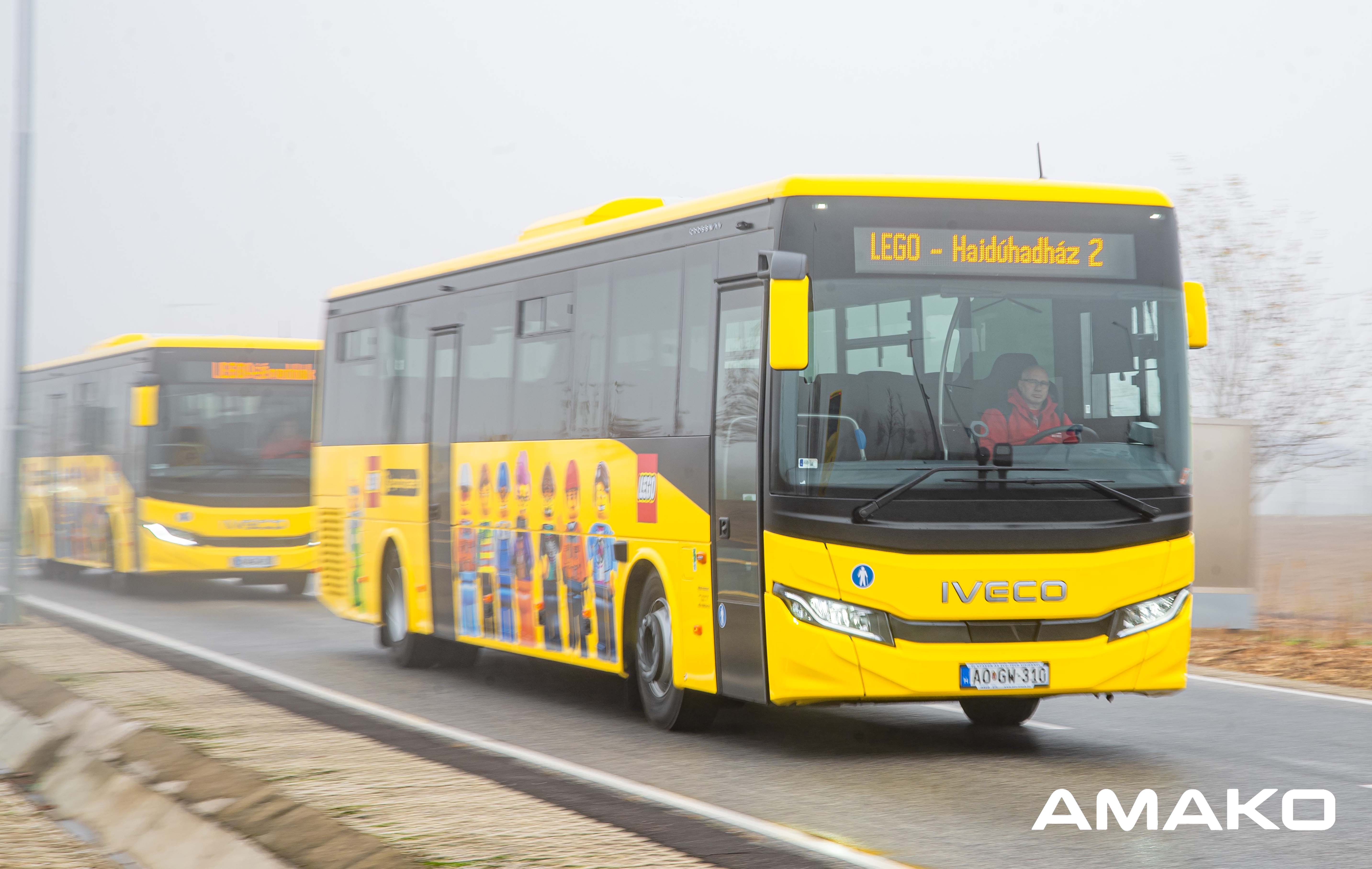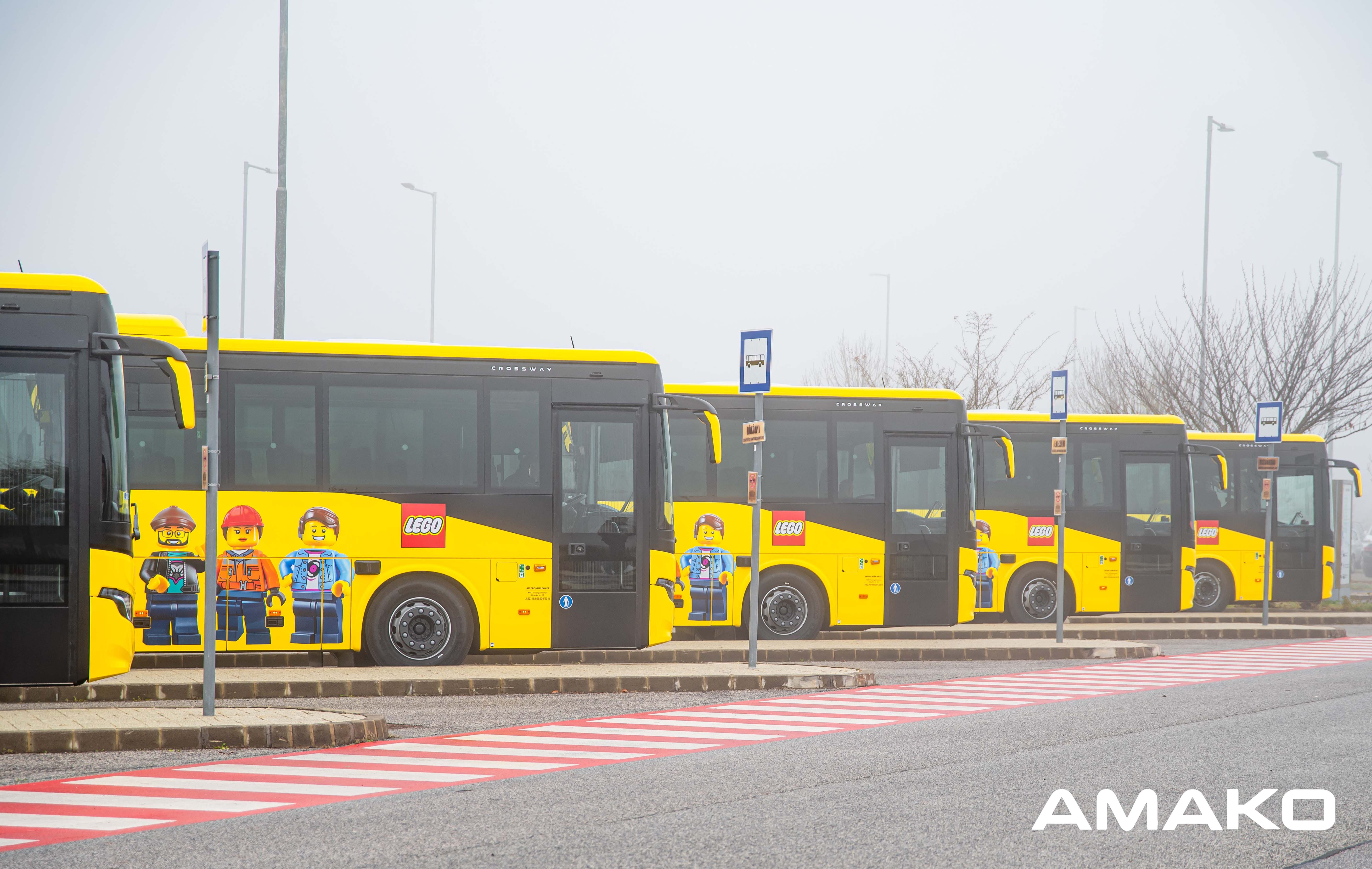 В Угорщині автопарк із 15 автобусів CROSSWAY, оформлених у фірмових кольорах бренду LEGO®, щодня курсуватиме дорогами міста Ньїредьгаза, забезпечуючи перевезення майже 2 000 співробітників між місцем проживання та роботою.